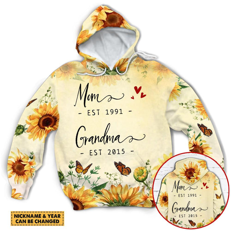 Mom And Grandma Est Year Sunflower Personalized Name 3D All Over Print