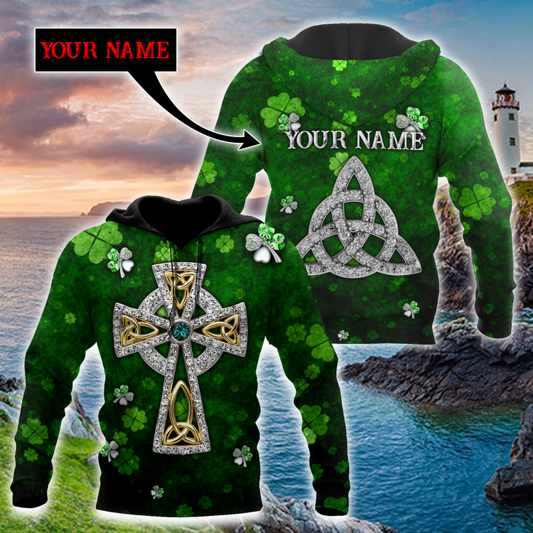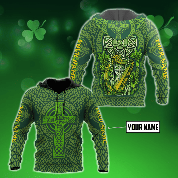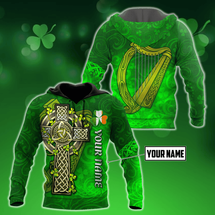 Custom Name Irish St. Patrick Celtic Cross And The Irish Harp, Personalized Patrick 3d Shirt