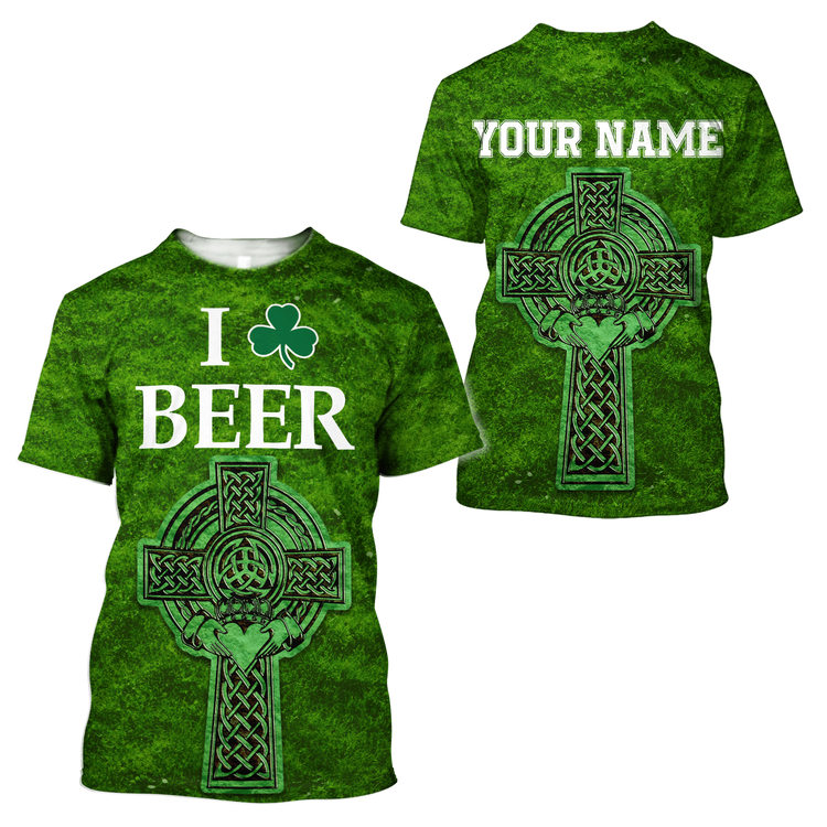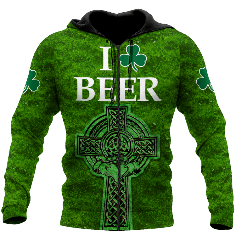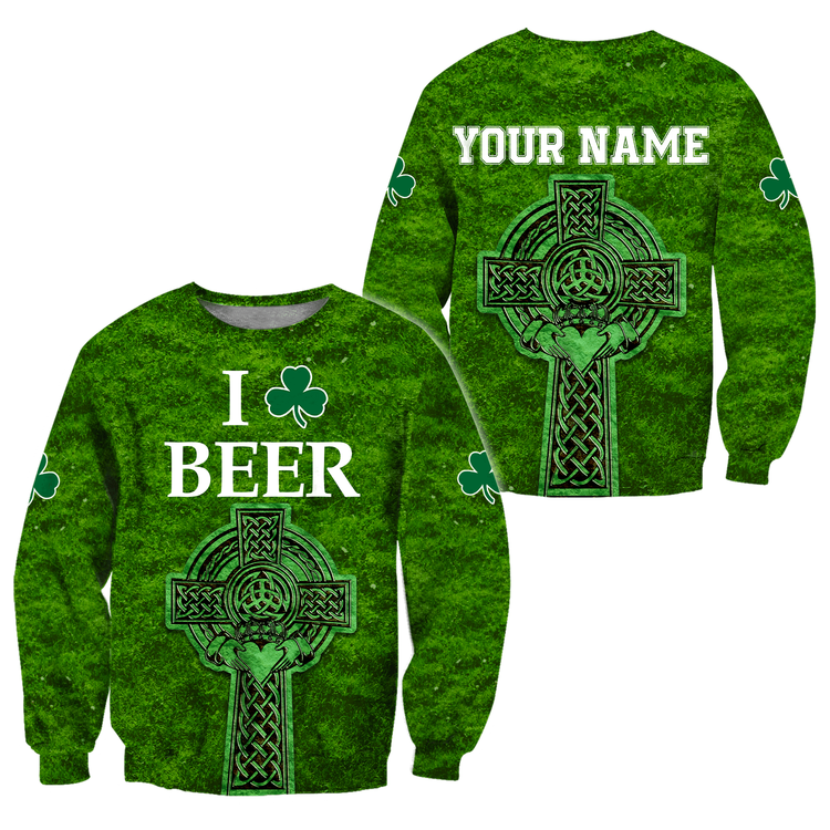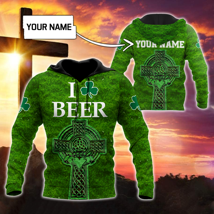 I Love Beer St. Patrick's Day 3D Hoodie Shirt For Men And Women, Custom Name Patrick Shirt