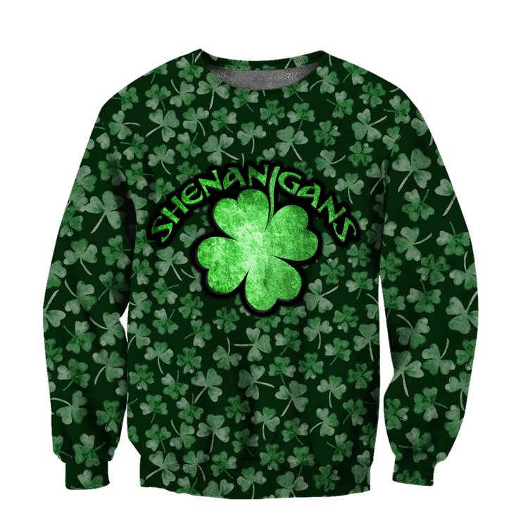 Home 3D Zip Hoodie Shenanigan Shamrock Pattern Irish St.Patrick Day D Hoodie Shirt For Men And Women