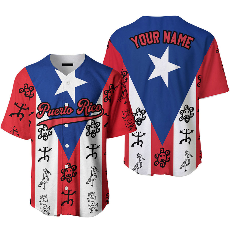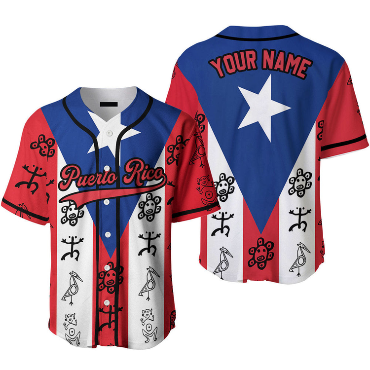 Custom Flag Funny Sketch Red Black Puerto Rico Baseball Jersey