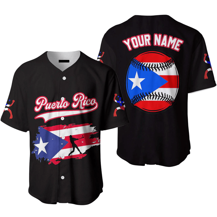 Custom Name Baseball Jerseys Puerto Rico Baseball Black White Red, Idea Gift for Men & Women