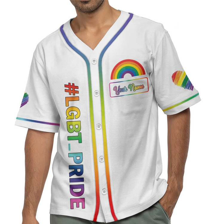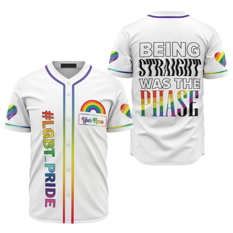 Custom Name LGBT White Phase Pride, Personalized LGBT Baseball Jersey