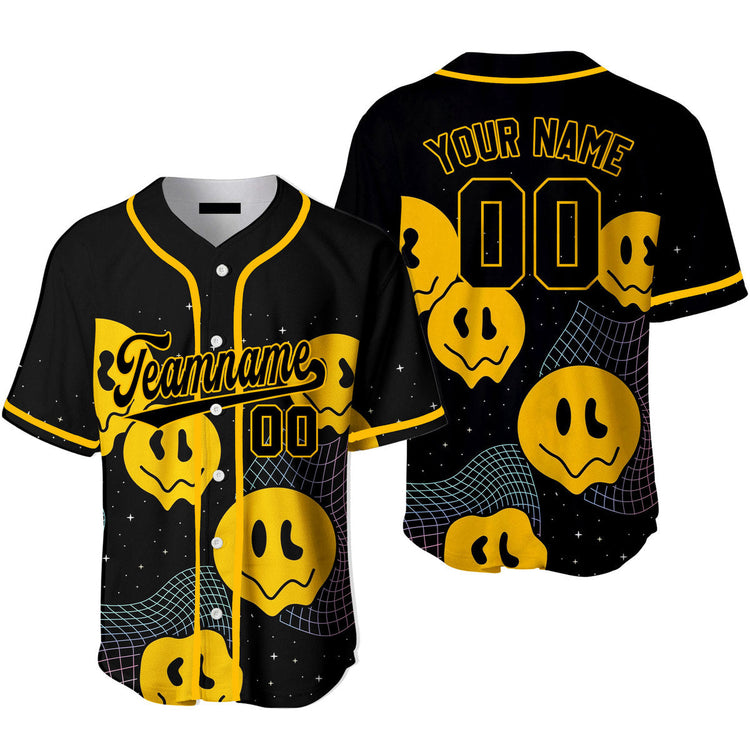 Custom Psychedelic Smiley Hippie Pattern Black Yellow Baseball Jerseys For Men & Women