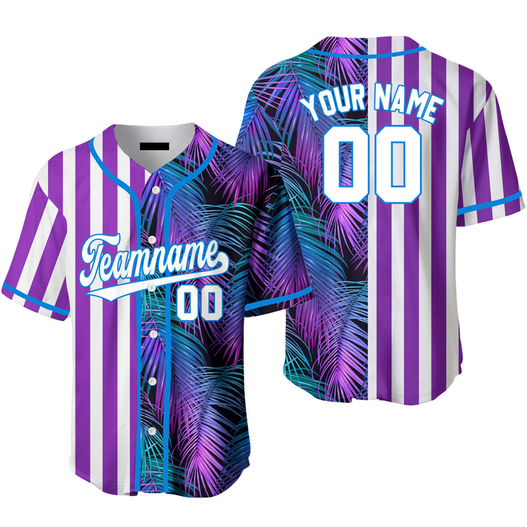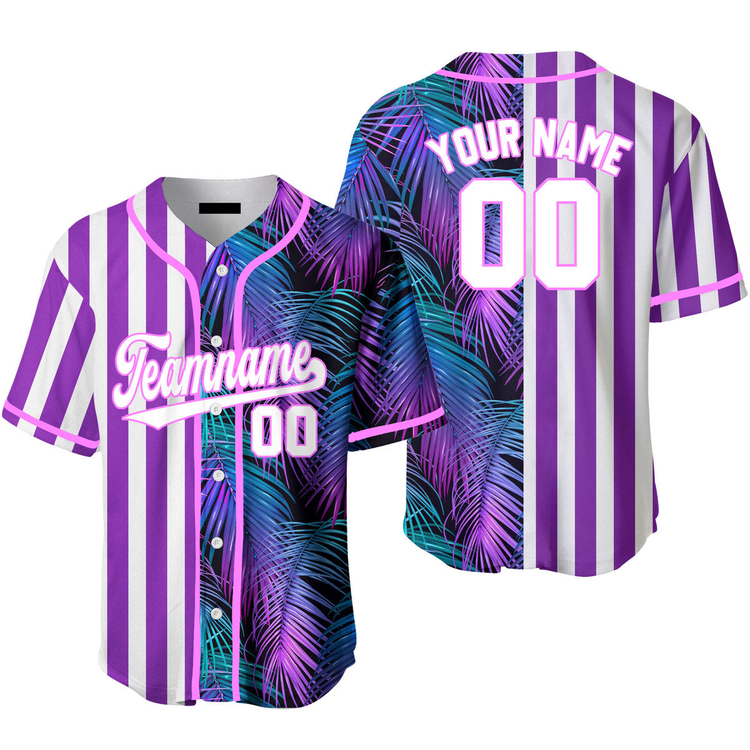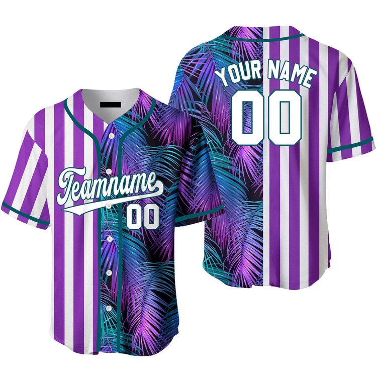 Custom Tropical Purple White- Kelly Green Split Fashion Baseball Jerseys For Men & Women