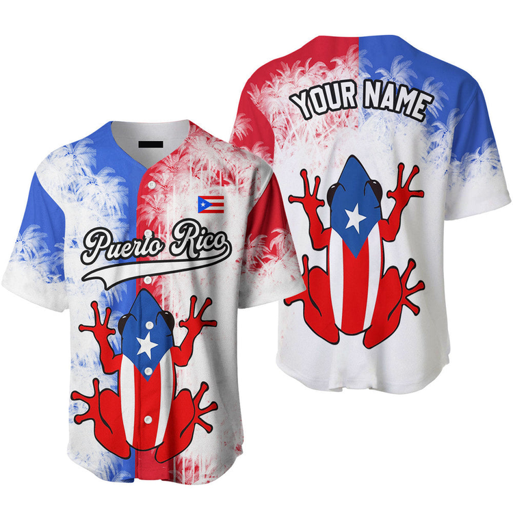 Home Baseball Jersey Custom White White Black Puerto Rico Flag Frog Baseball Jersey