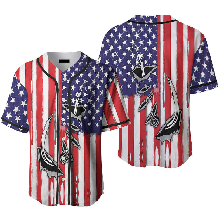 Fish Hook American Flag Baseball Jersey , Idea Gift for Men & Women