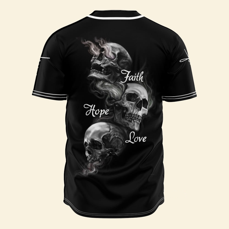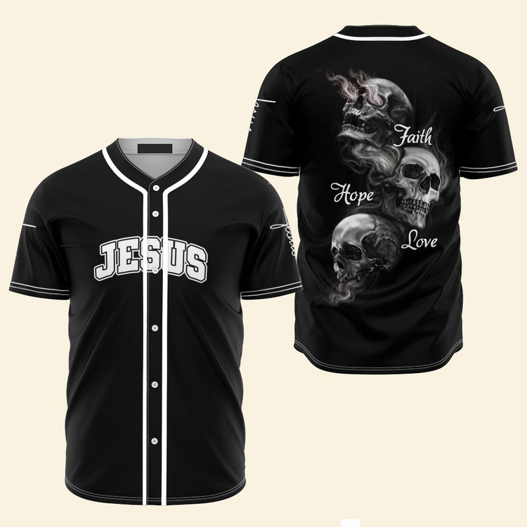 Jesus Skull Faith Hope Love Baseball Jersey Shirt, Jesus Shirt