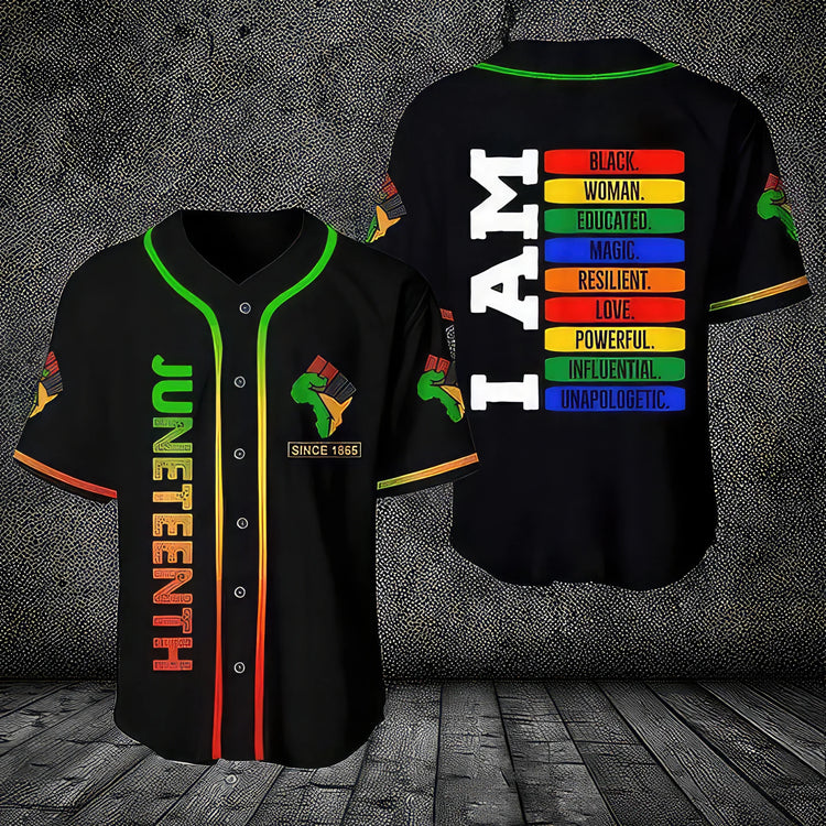 Juneteenth Since 1865 I Am Black Women Magic Baseball Tee Jersey Shirt Printed 3D