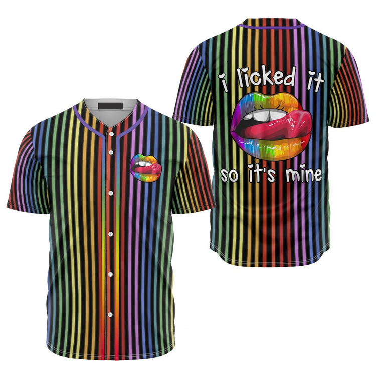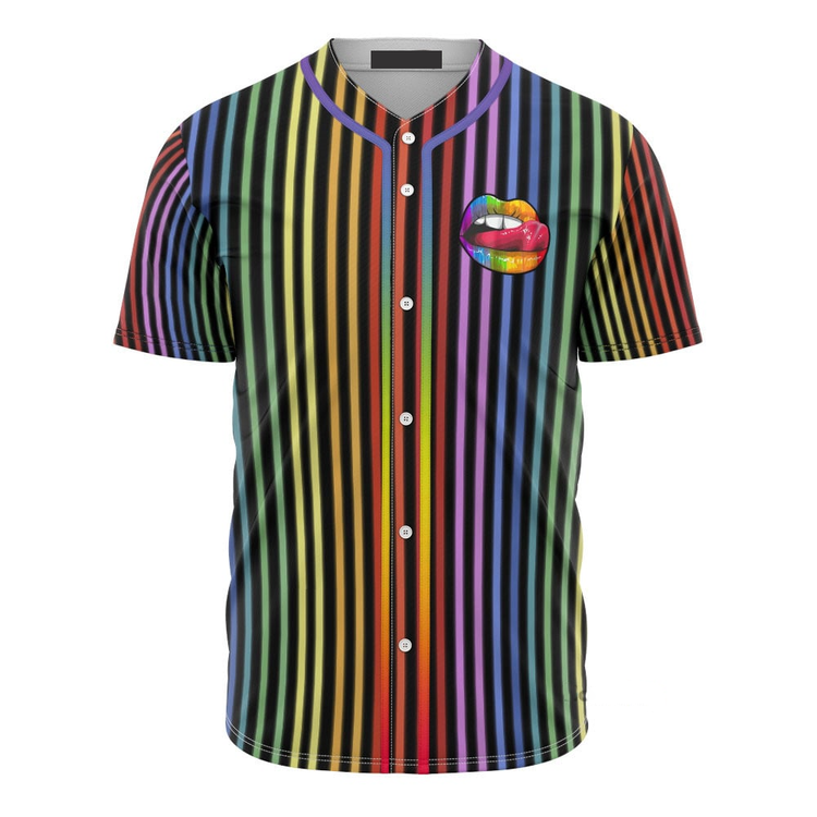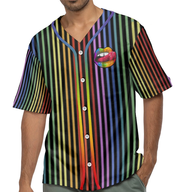 Lgbt Pride Lips On Vertical Rainbow Baseball Jersey Shirt