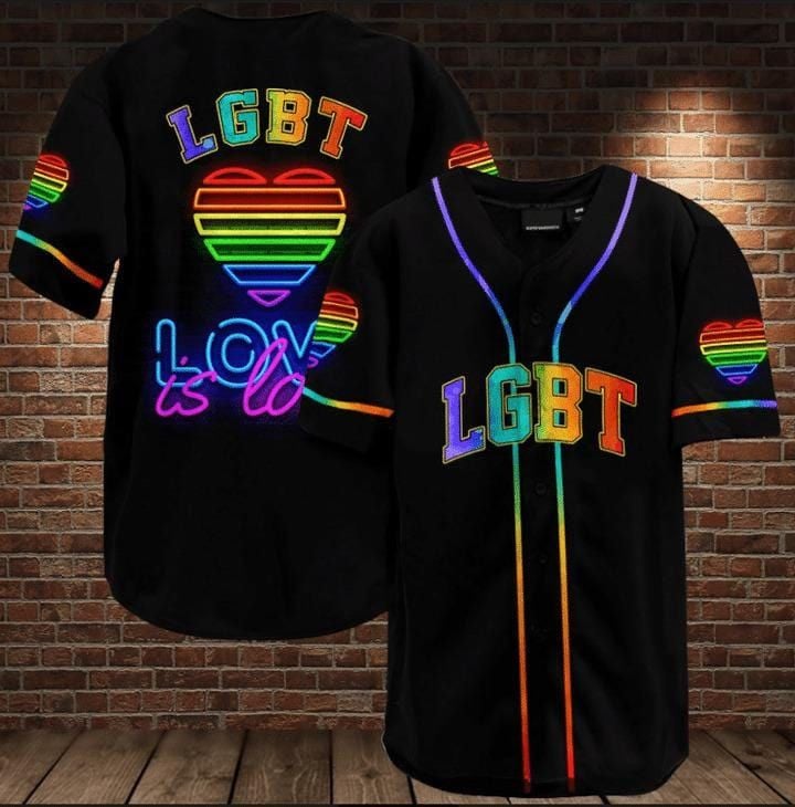 LGBT Pride love is love rainbow black Baseball Tee Jersey Shirt Printed 3D