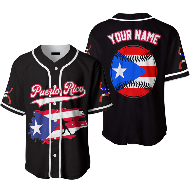 Puerto Rico Baseball Black Red White, Custom Name Baseball Jerseys For Men