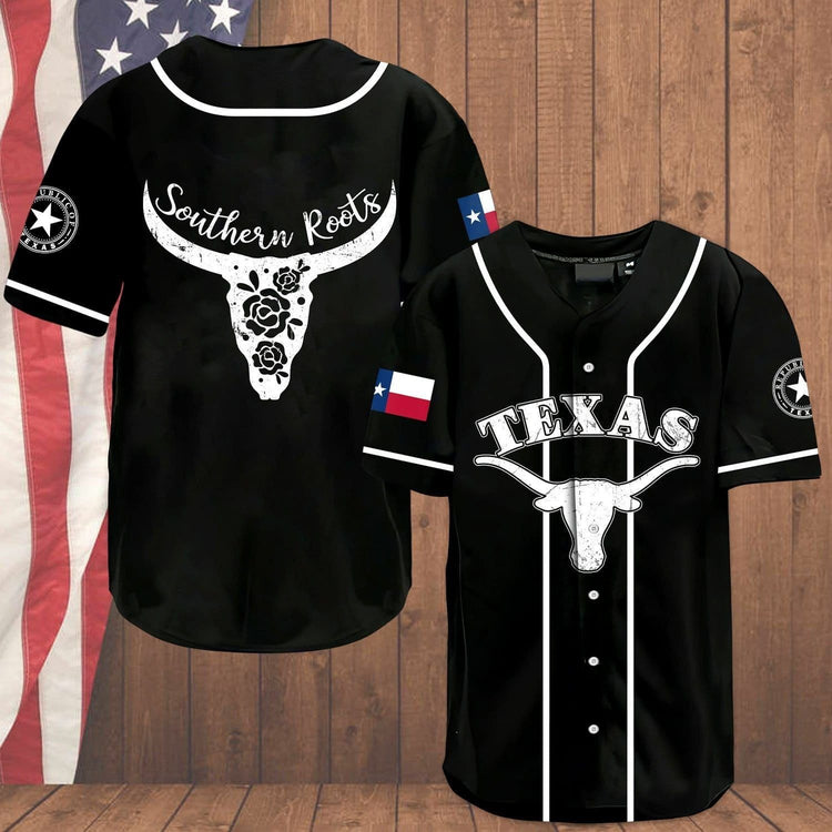 Texas Southern Roots Baseball Jersey, Texas Black and White Baseball Shirt