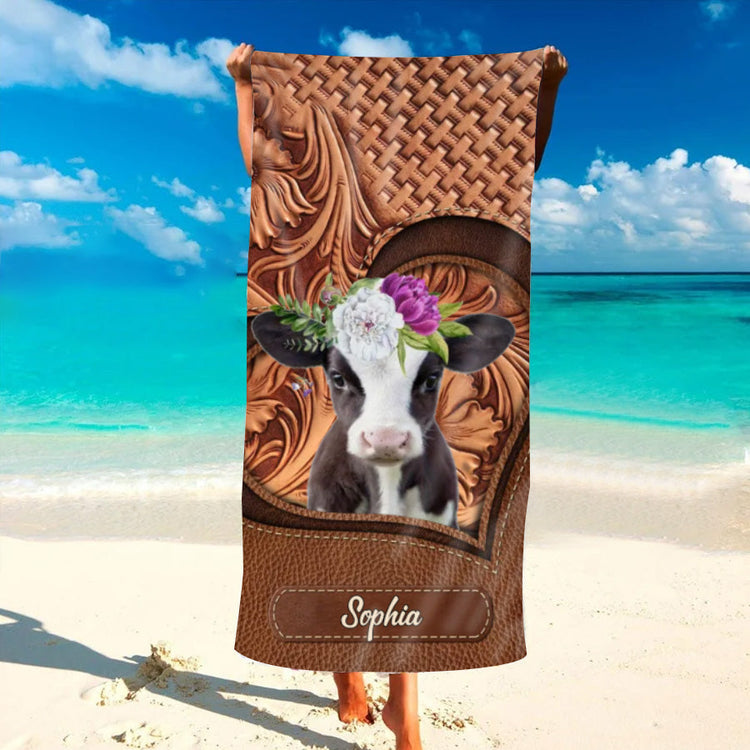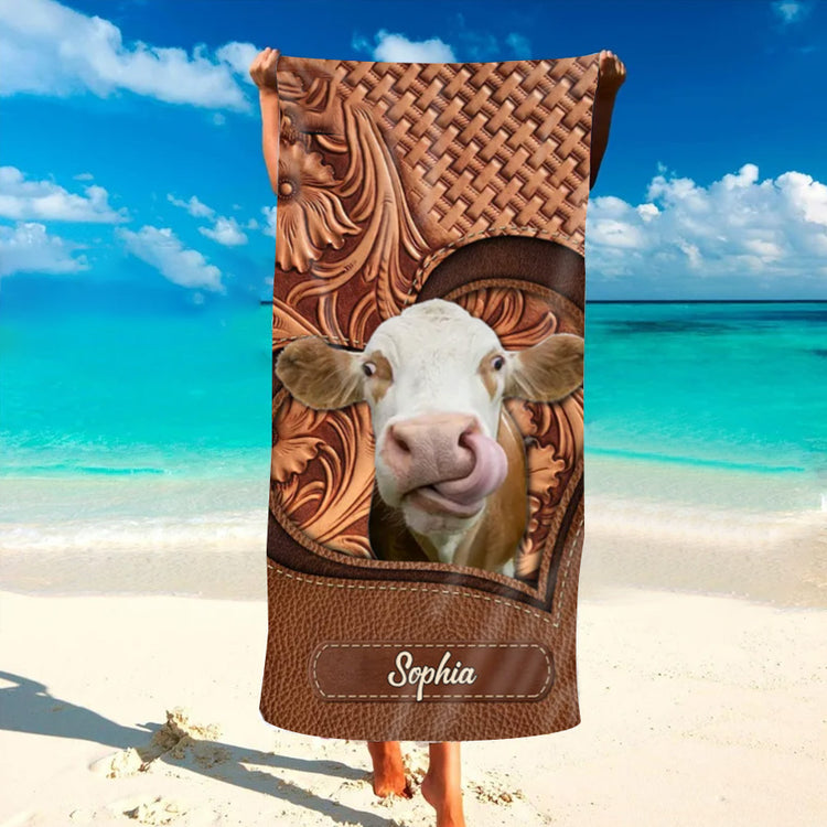 Love Cow Breeds Custom Name beach towel, Summer Gift for Farm, Gift for Cow Lover