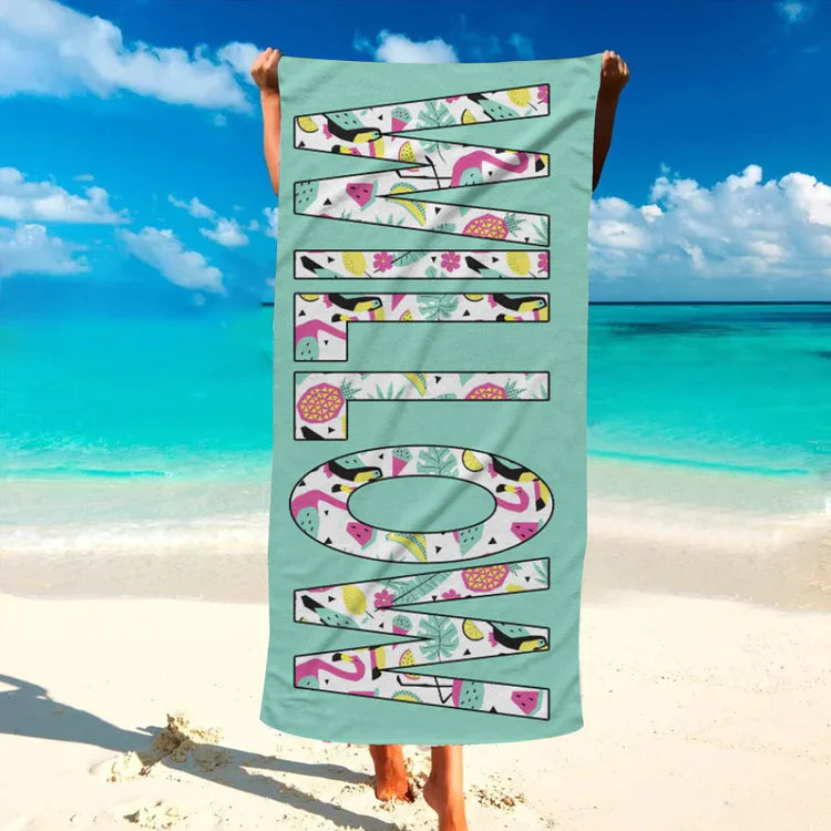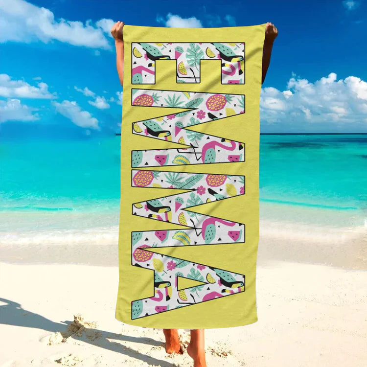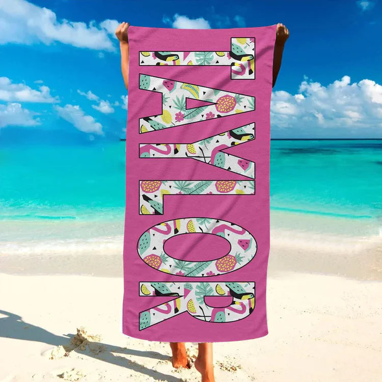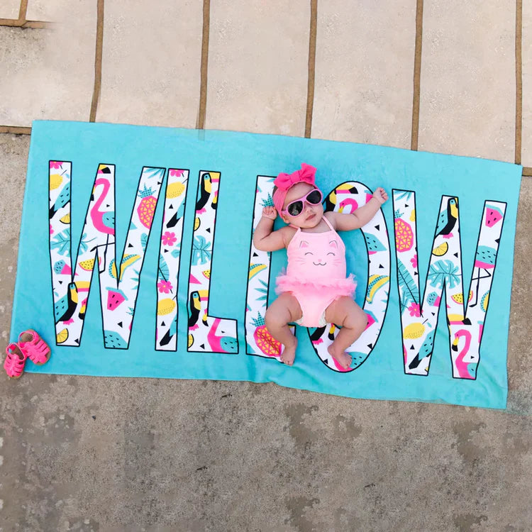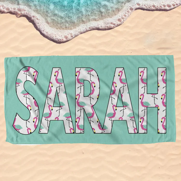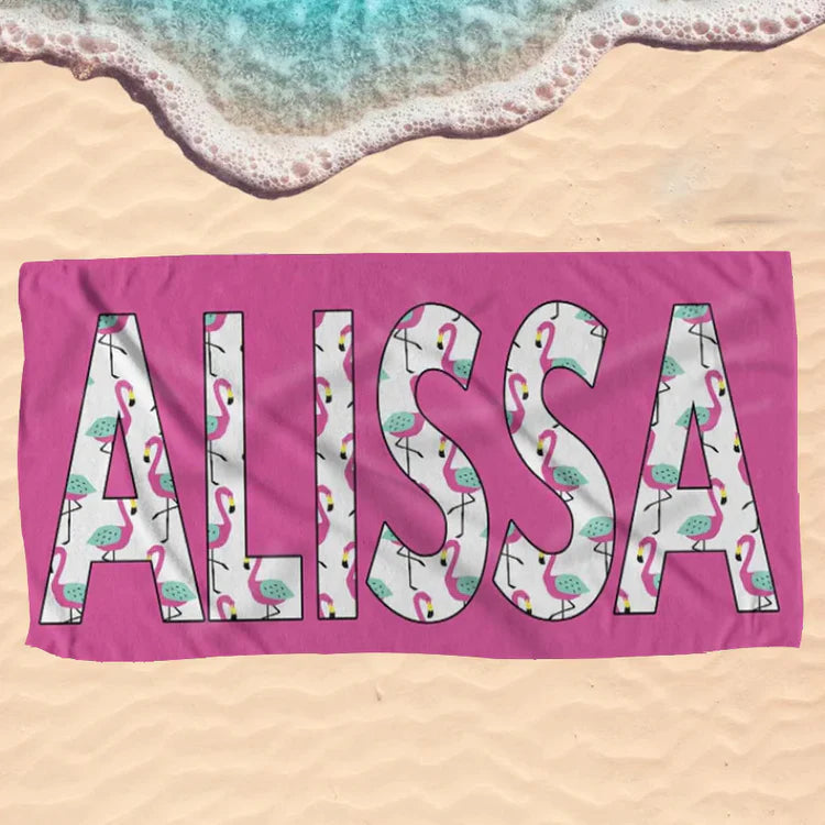 Personalized Beach Towel flammingo pattern - Kids Beach Towel for Girls Boys