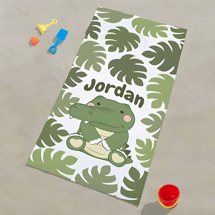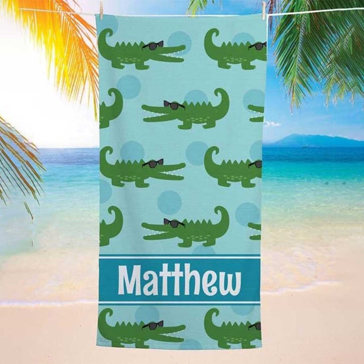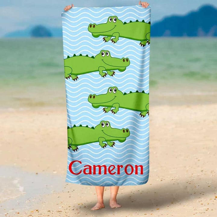 Personalized Name Cute Alligator Name Beach Towel, Baby Shower Gift, Kids Beach Towel
