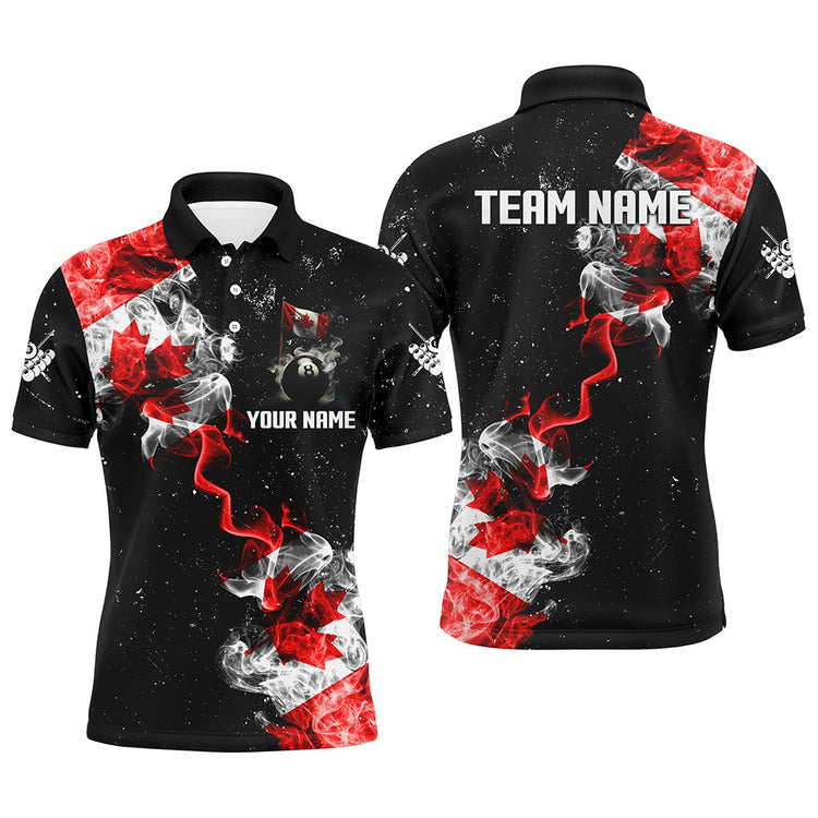 Billiard 8 Ball Grunge Canada Flag Smoke Customized Name, Team Name 3D Polo Shirt, Billiard Canada Shirt