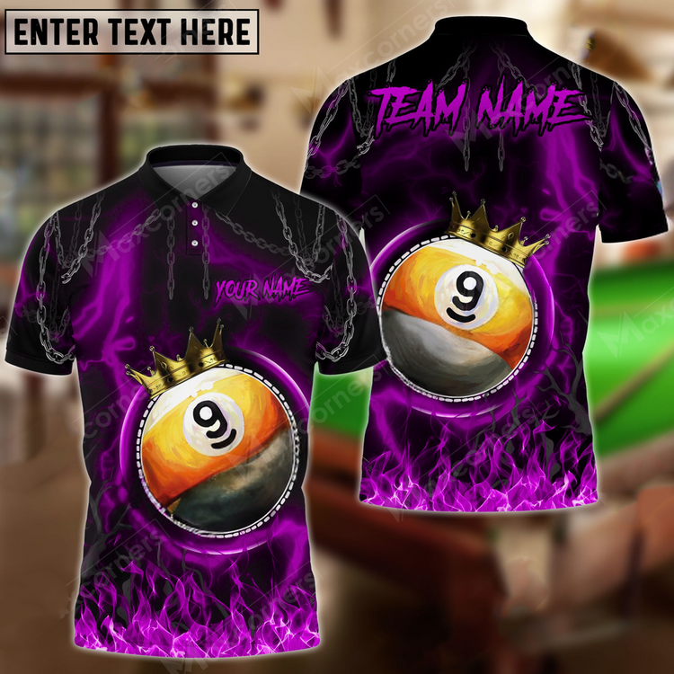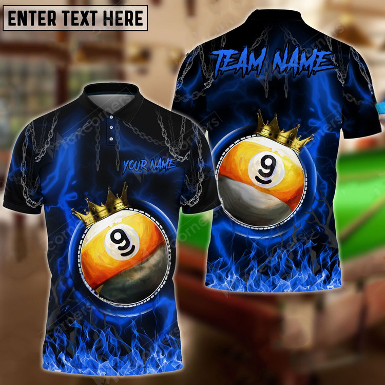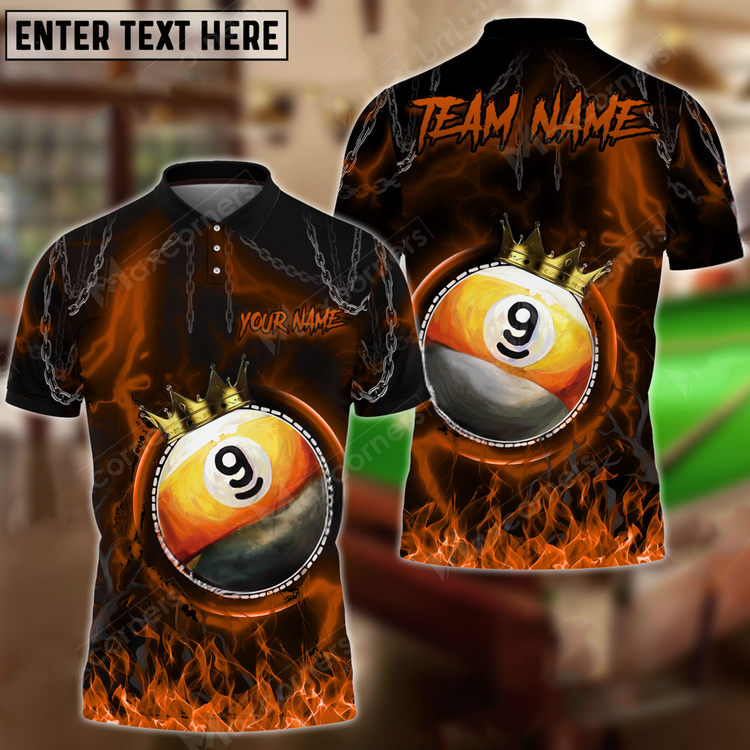 Billiard Ball 9 Chain King Multicolor Options Personalized Name, Team Name 3D Polo Shirt