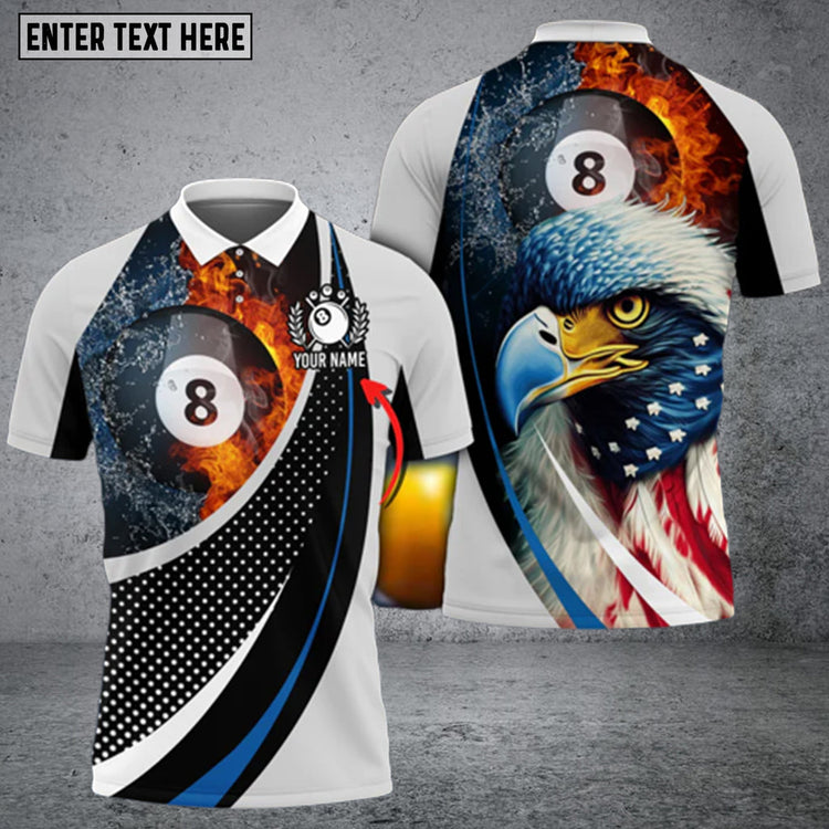 Billiard Masterpiece Personalized Name 3D Shirt, Eagle Billiard Polo Shirt for Men