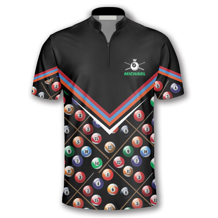 Billiard Pattern In Black Custom Billiard Jerseys for Men, Personalized Name Billiard Shirt, Idea Gift for Billiard Player