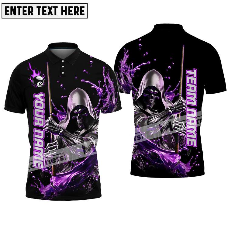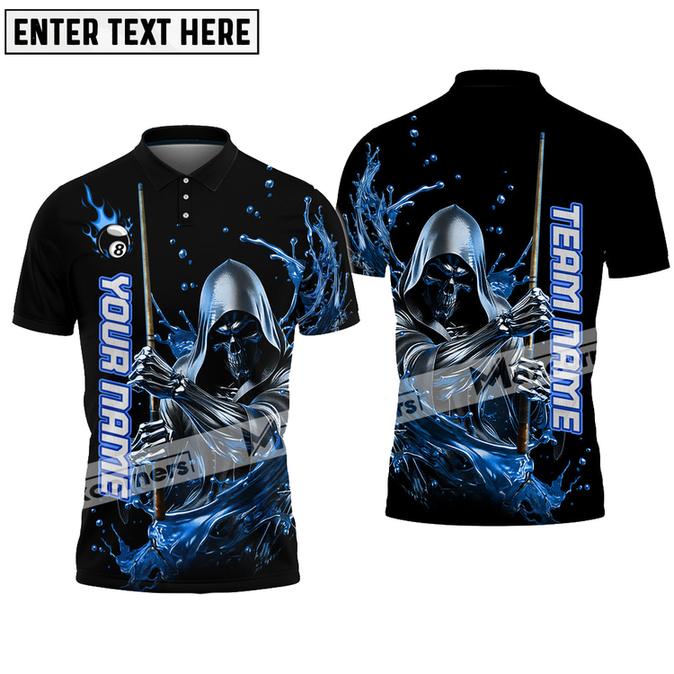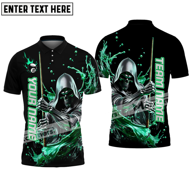 Billiard Skull Reaper Ball 8 Flame Logo Multicolor Options Personalized Name, Team Name 3D Polo Shirt