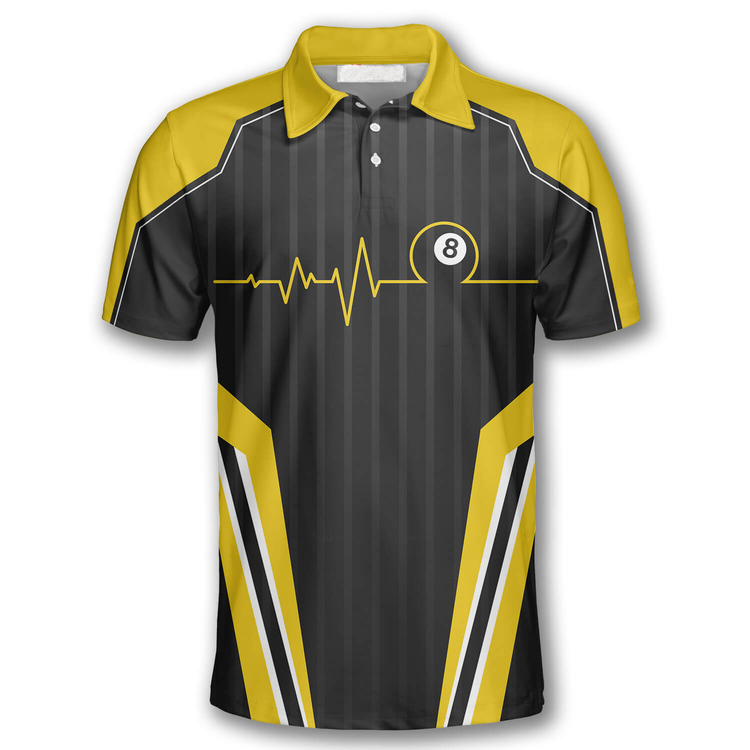 Billiard Yellow Heartbeat Sports Style Custom Billiard Shirts for Men, Best Shirt Team Billiard Uniform