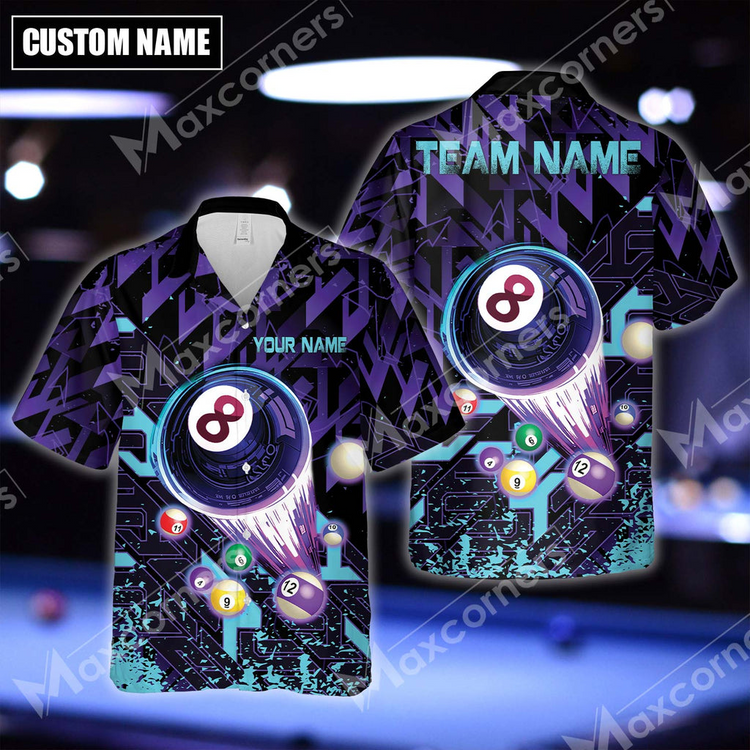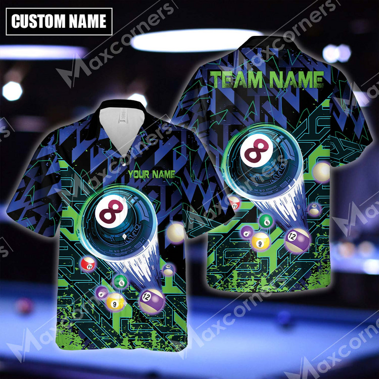 Billiards 8 Ball Abstract Grunge Multicolor Options Personalized Name Hawaiian Shirt