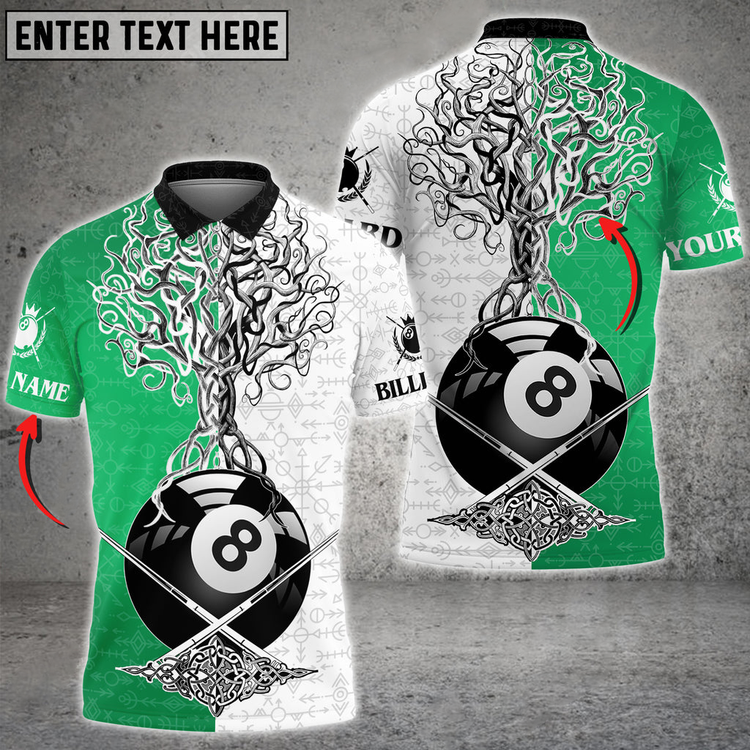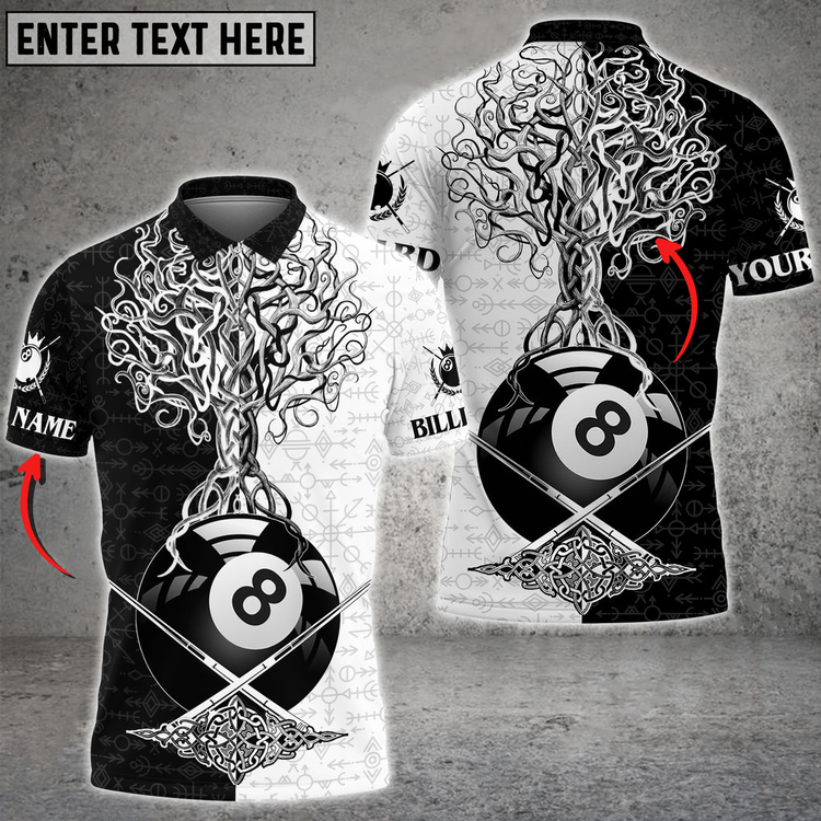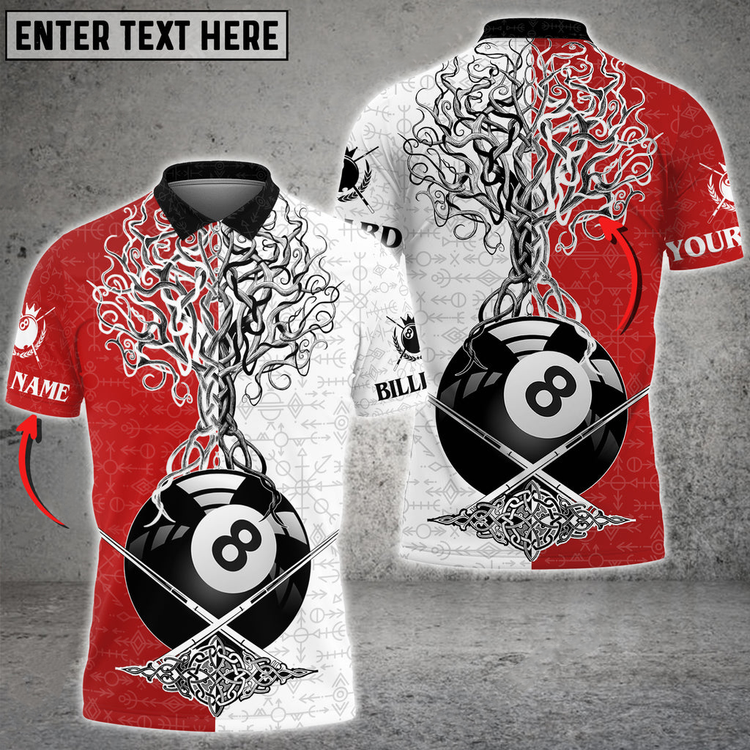 Billiards 8 Ball Viking Multi Color Options Personalized Name 3D Polo Shirt, Gift for Billiards Lovers