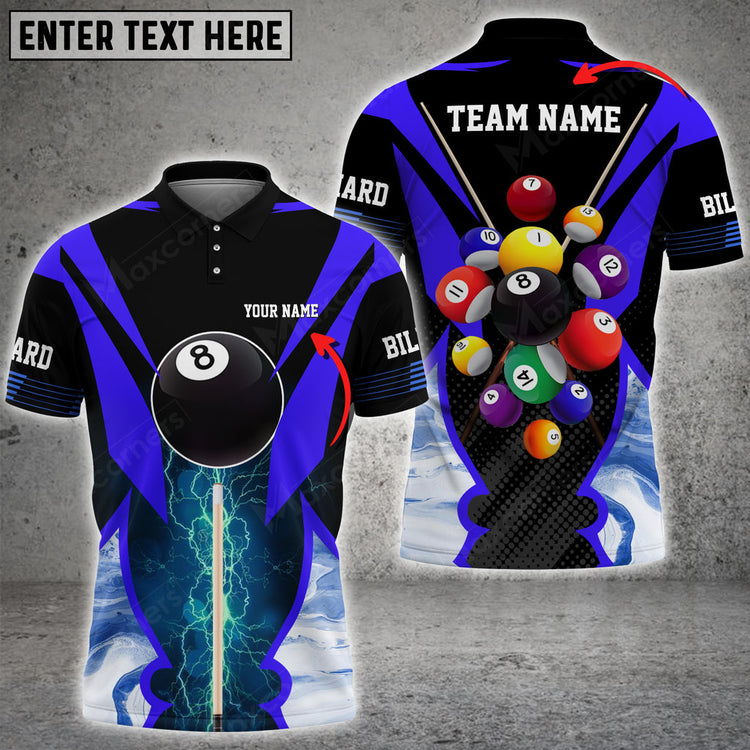 Billiards Ball 8 Blue Thunder Personalized Name 3D Polo Shirt, Shirt for Pooler