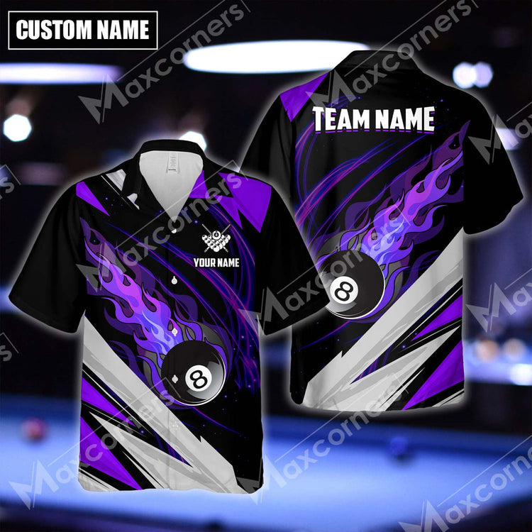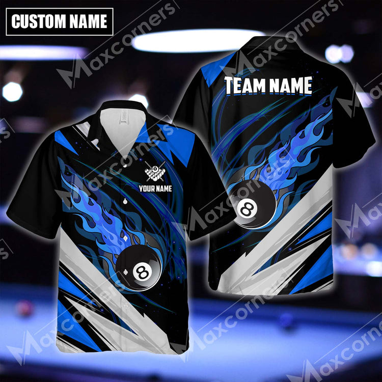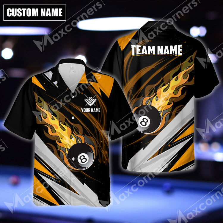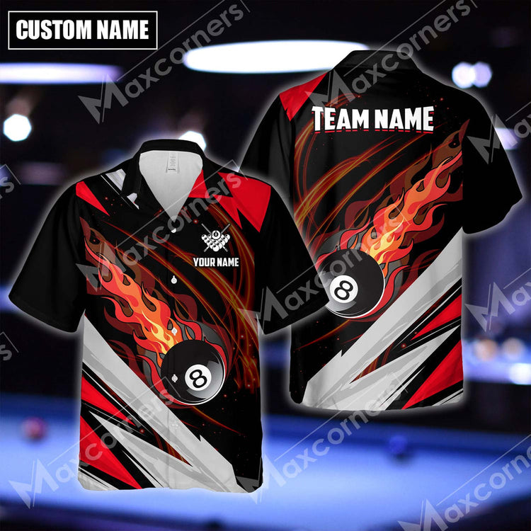 Billiards Ball 8 Fire Multicolor Options Personalized Name Hawaiian Shirt, Gift for Billiard Players