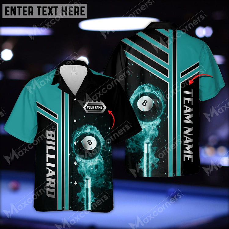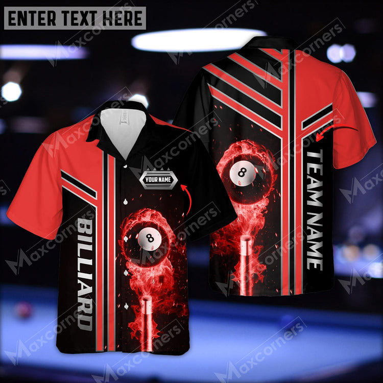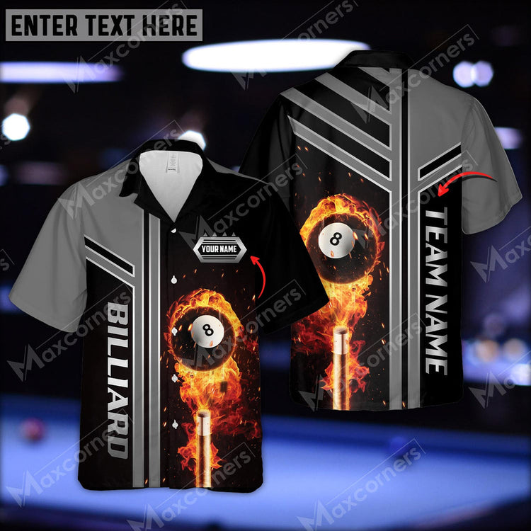 Billiards Ball 8 Fire Multicolor Options Personalized Name Hawaiian Shirt, Perfect Shirt for Billiard Lovers
