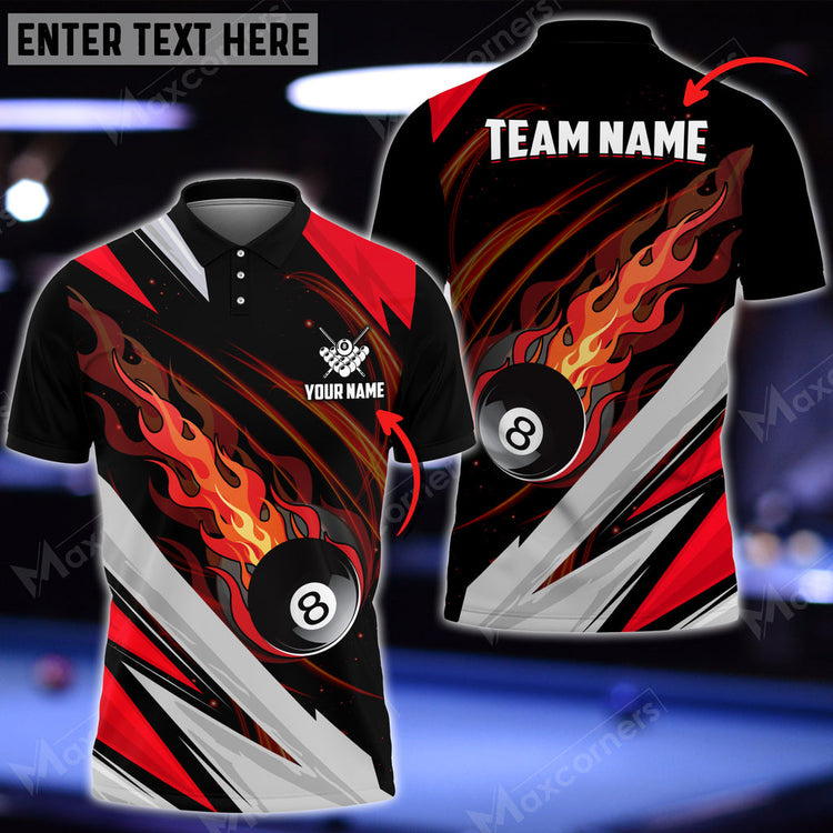 Billiards Ball 8 Fire Personalized Name 3D Polo Shirt Multi Color Options, Gift for Pooler