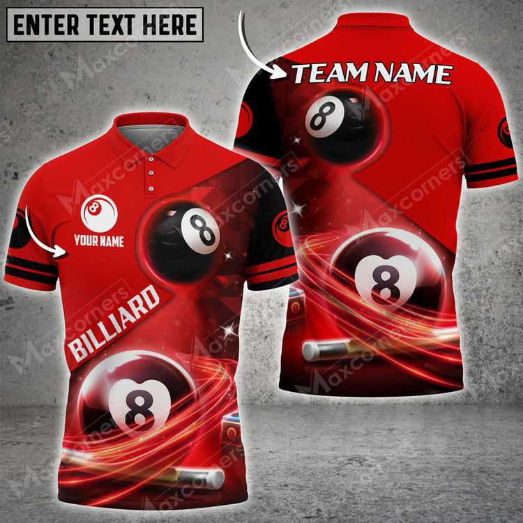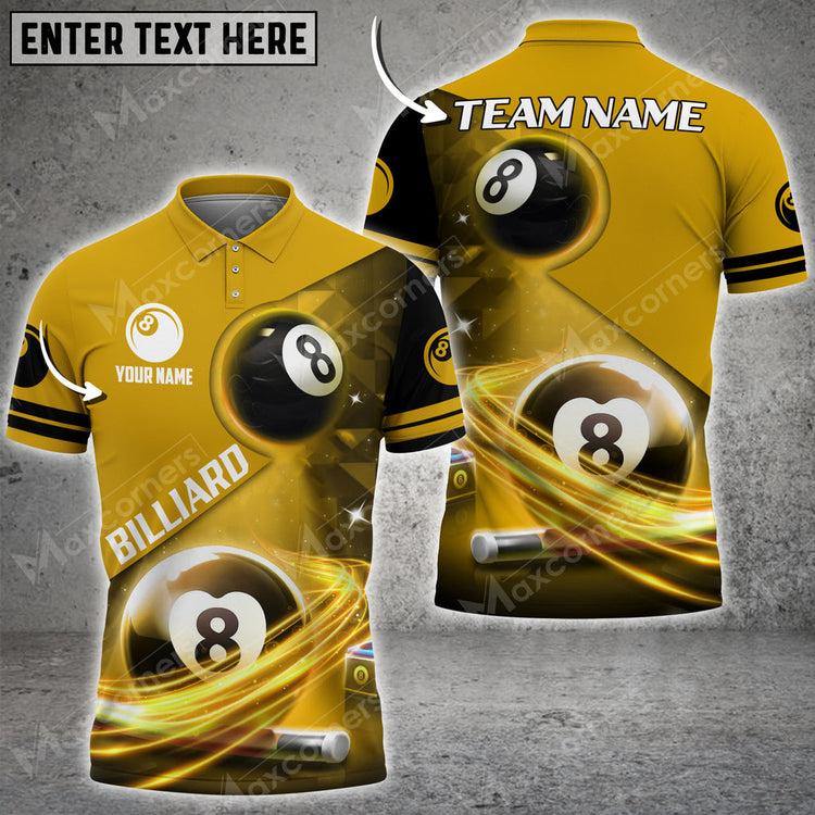 Billiards Ball 8 Light Personalized Name, Team Name Unisex 3D Polo Shirt Multicolor Options