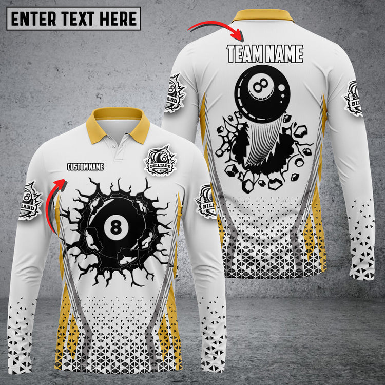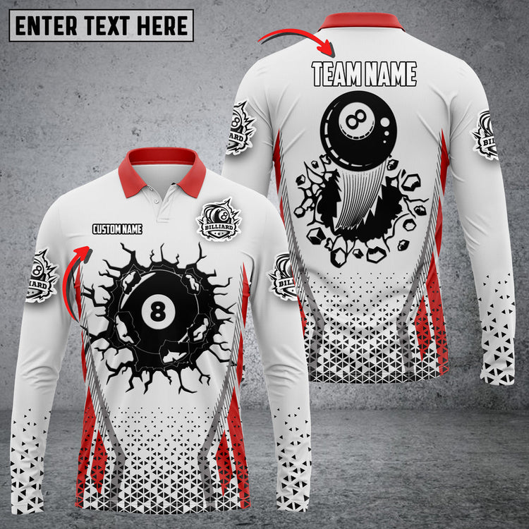 Billiards Ball 8 Multicolor Options Personalized 3D Long Sleeve Polo Shirt, Gift for Billiard Lovers