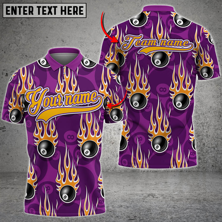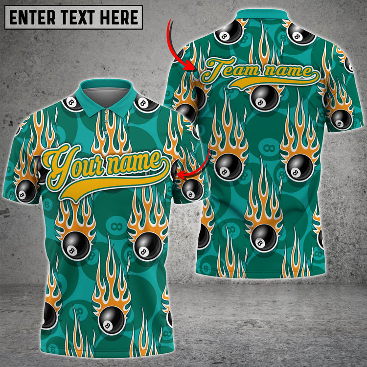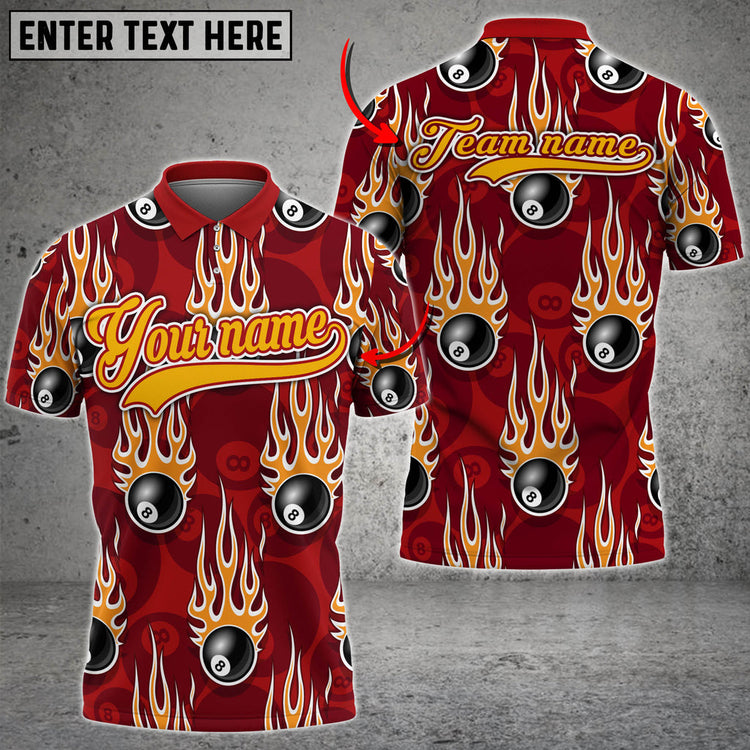 Billiards Ball 8 Shower Multicolor Options Personalized Name 3D Polo Shirt, Billiard Fire Shirt