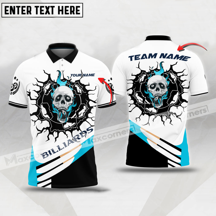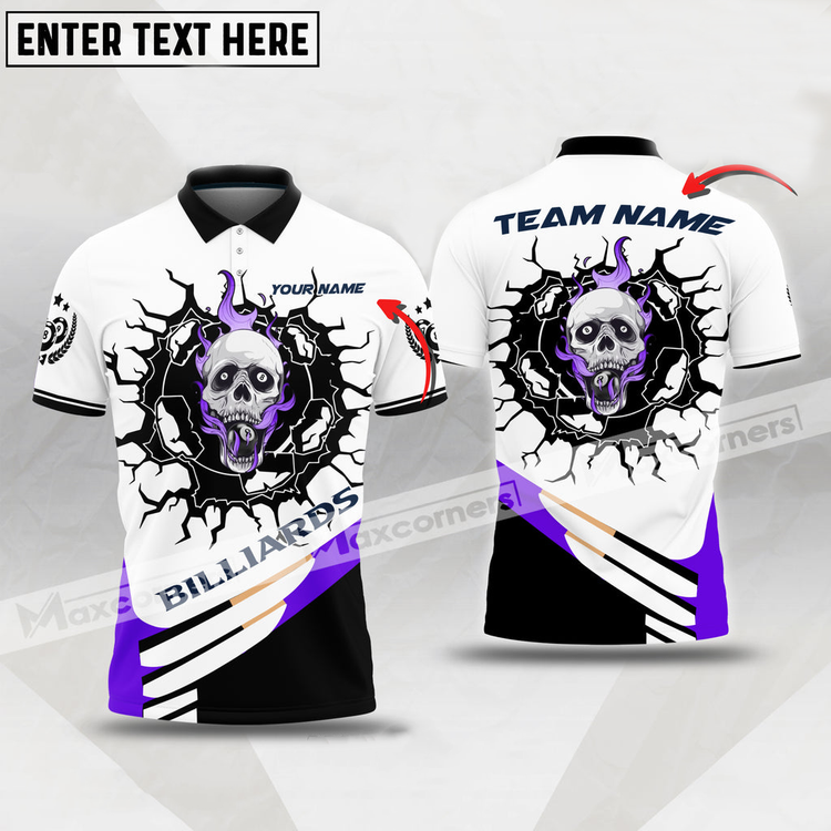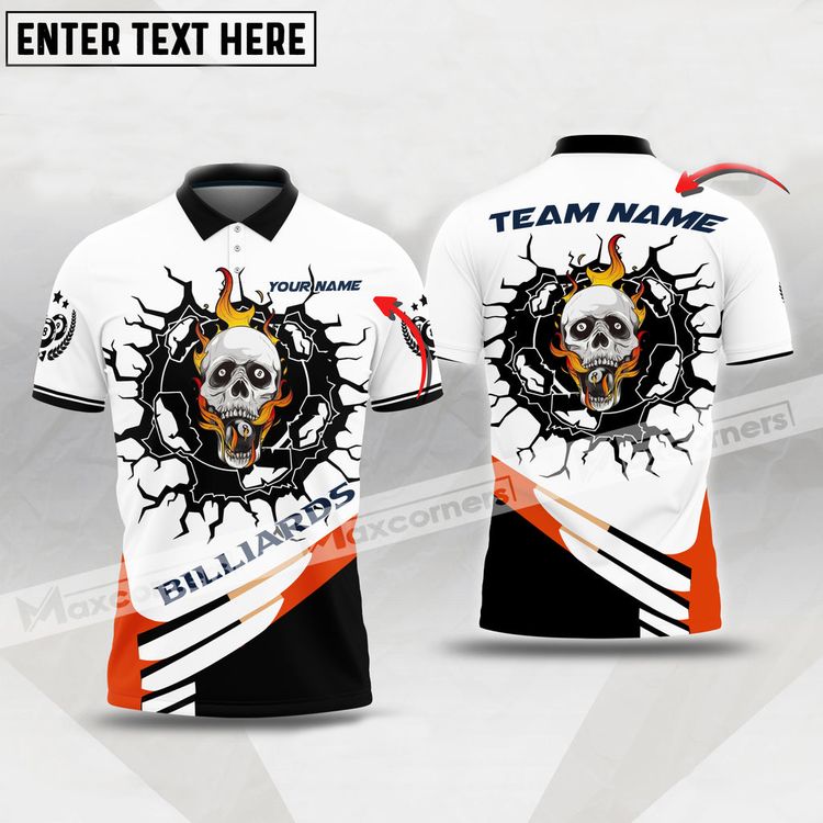 Billiards Ball 8 Skull Crack Multicolor Options Personalized Name 3D Polo Shirt, Perfect Shirt for Team Billiard
