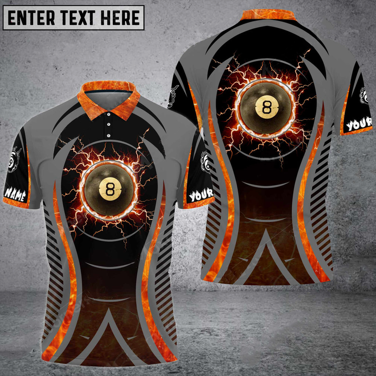Billiards Ball 8 Thunder Personalized Name 3D Polo Shirt, Perfect Gift for Billiard Lovers