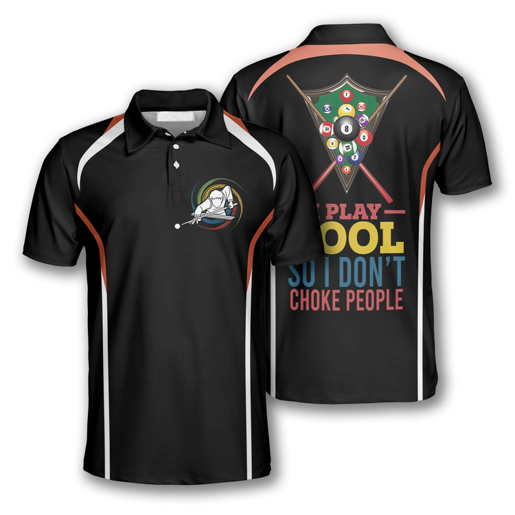 Billiards I Play Pool So I Don’t Choke People Black Background Billiard Shirts for Men Billiard Polo Shirt