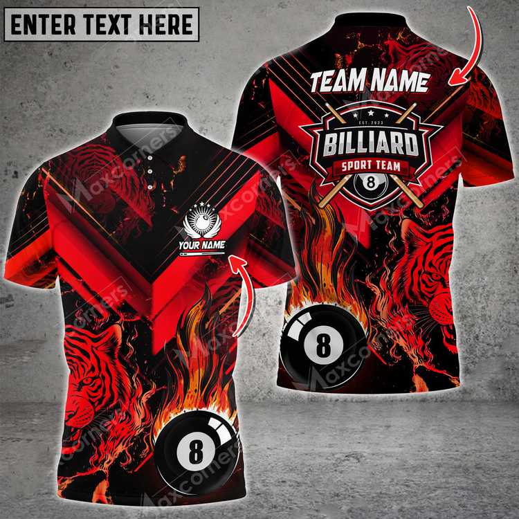 Billiards King Forest Fire Personalized Name, Team Name 3D Polo Shirt, Perfect Gift for Billiard Lovers