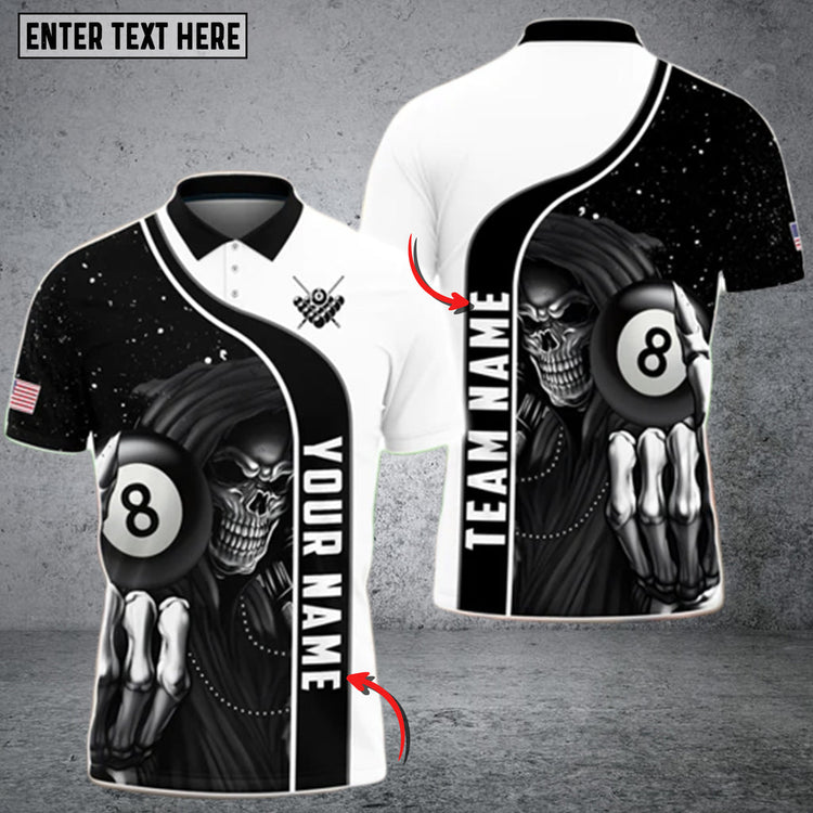 Billiards Passion Personalized Name 3D Shirt, Billiard Reaper 8 Ball Polo Shirt