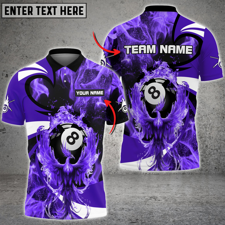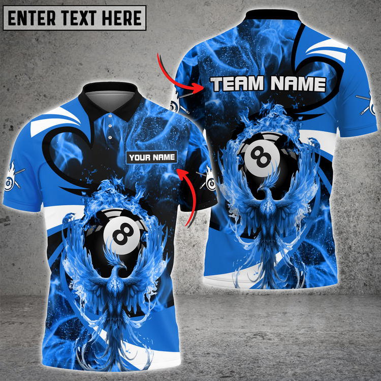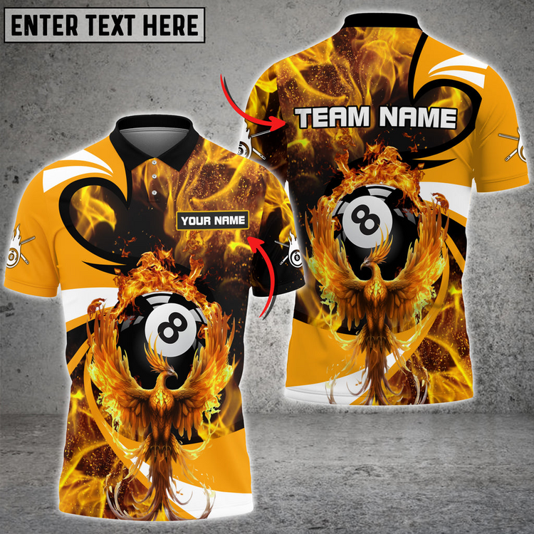 Billiards Phoenix Fire Personalized Name 3D Polo Shirt, Idea Gift for Billiards Lovers
