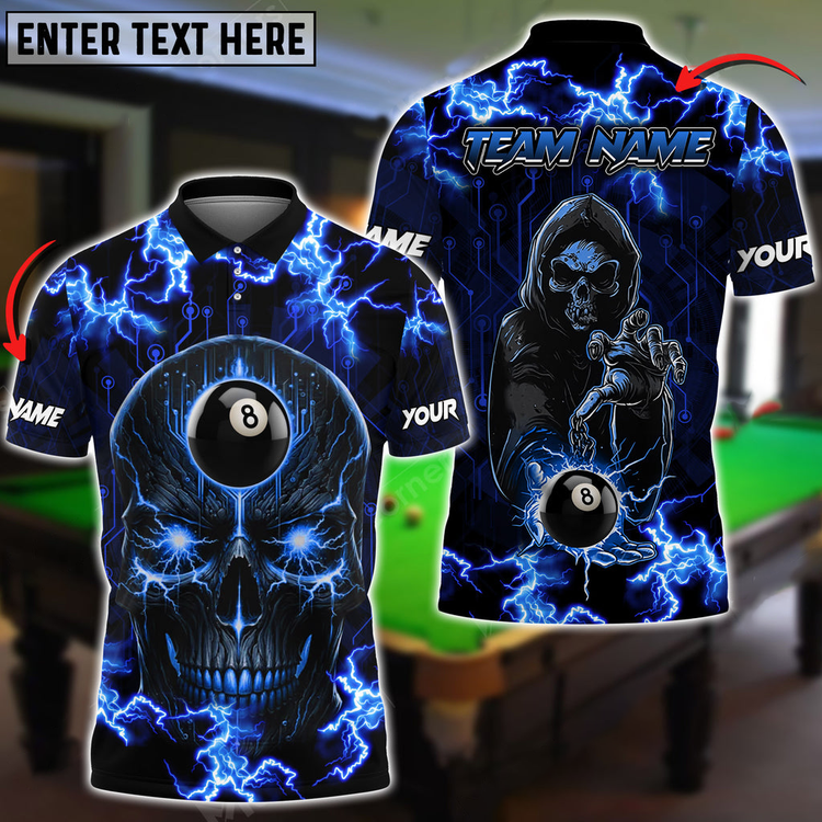 Billiards Skull Thunder Billiard Multicolor Option, Personalized Name Team 3D Polo Shirt, Gift for Billiard Lovers