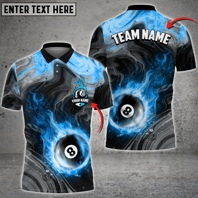 Coolspod Billiards 8 Ball Fire Watercolor Personalized Name, Team Name Multi Color Polo Shirt