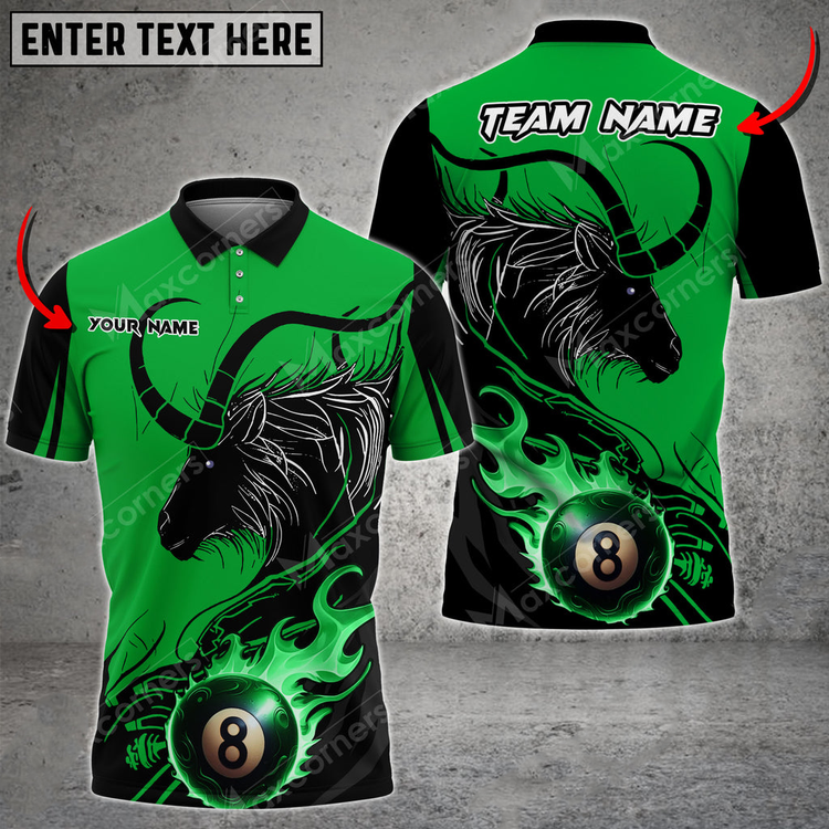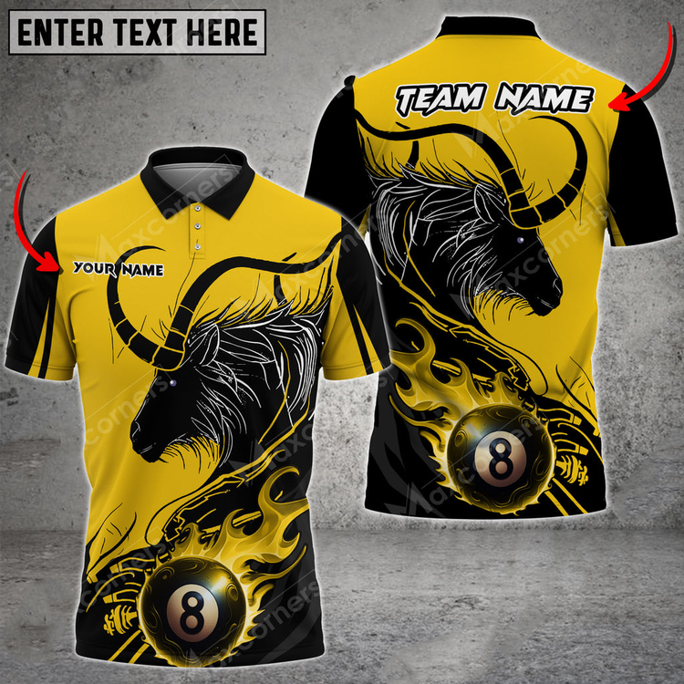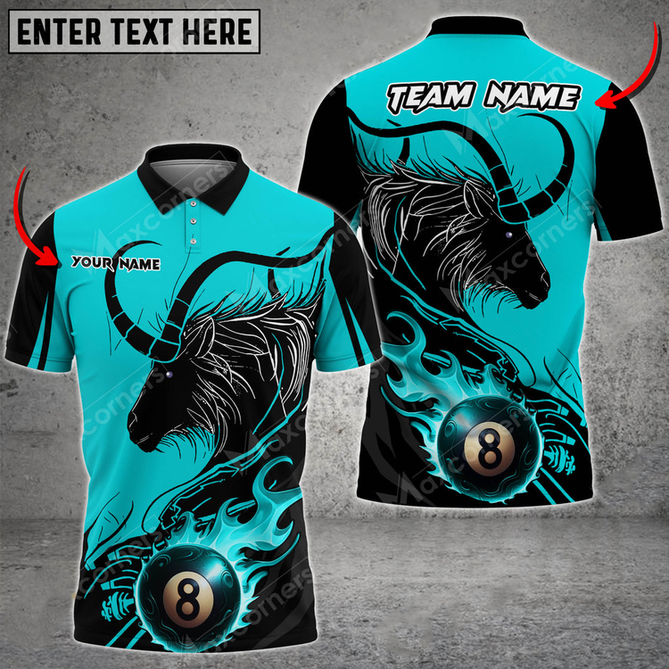 Coolspod Billiards 8 Ball Goat Fire Personalized Name, Team Name Polo Shirt