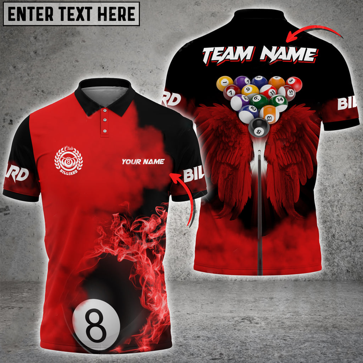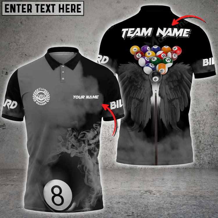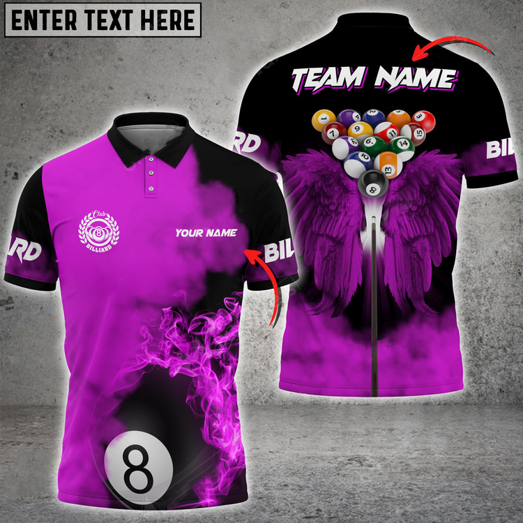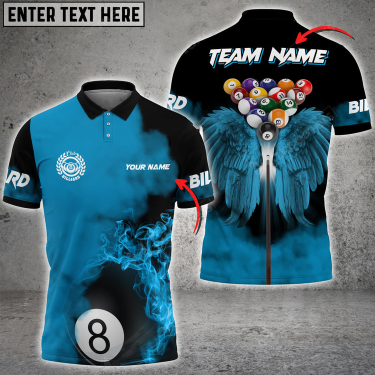 Coolspod Billiards Angel Wings Multicolor Option Customized Name 3D Polo Shirt, Gift for Billiard Players