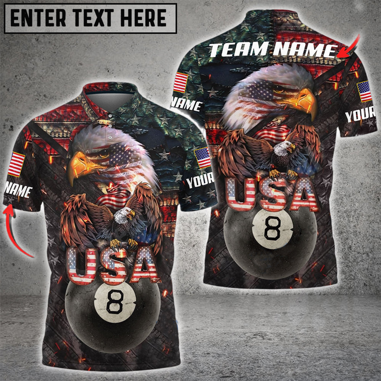 Coolspod Billiards Ball 8 The Pride Of America Personalized Name, Team Name Polo Shirt