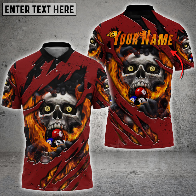 Coolspod Billiards Fire Skull Personalized Name 3D Polo Shirt, Idea Gift for Billiard Player