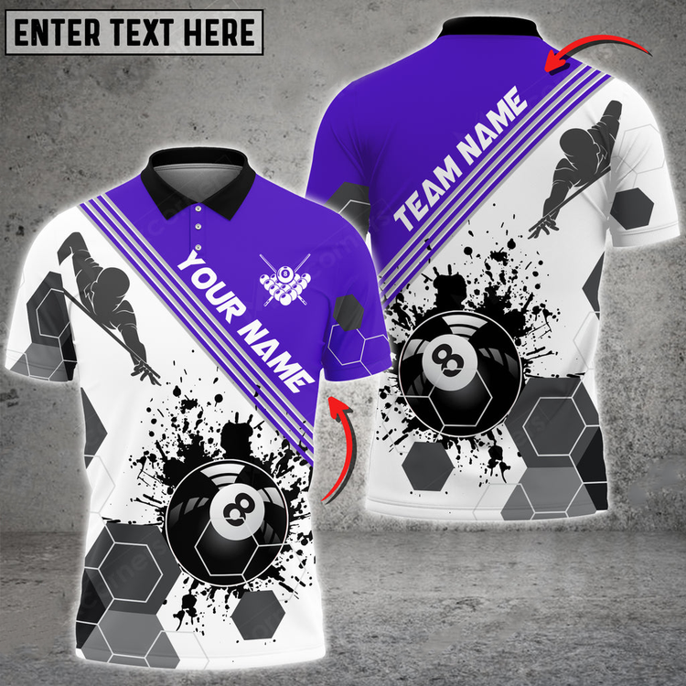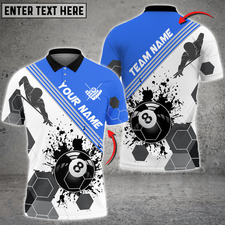 Coolspod Billiards Players Black Stains Personalized Name 3D Polo Shirt Multi Color Options