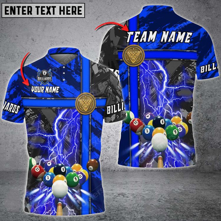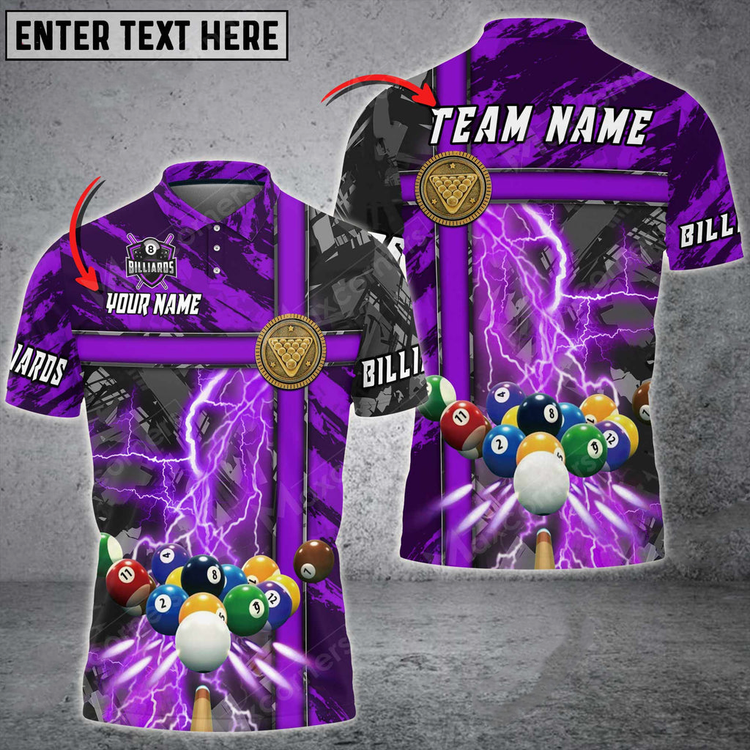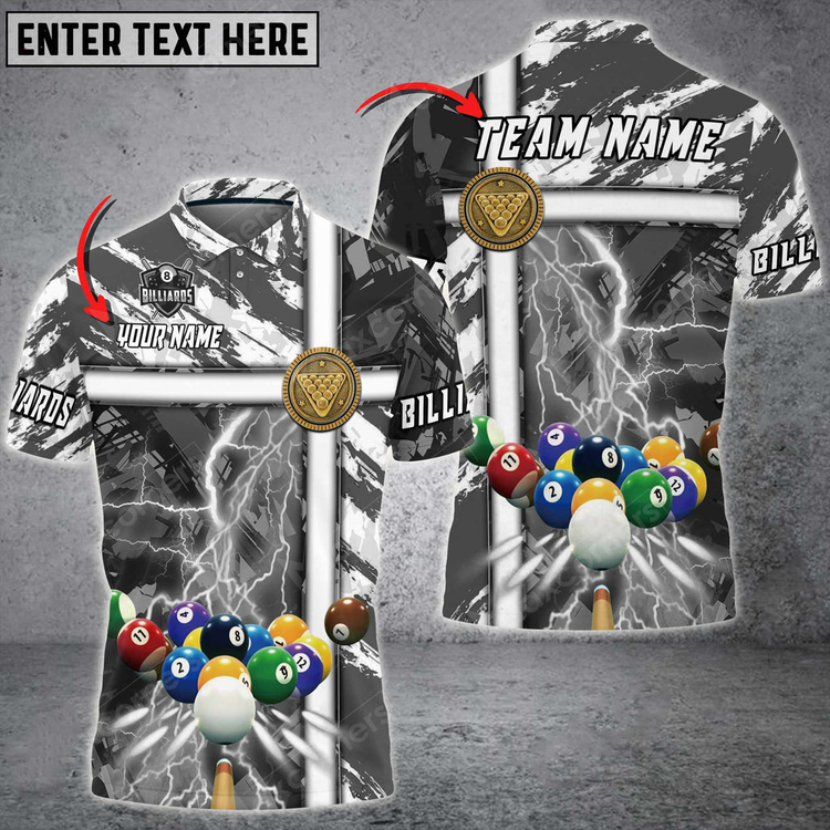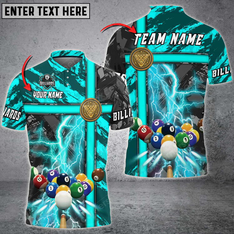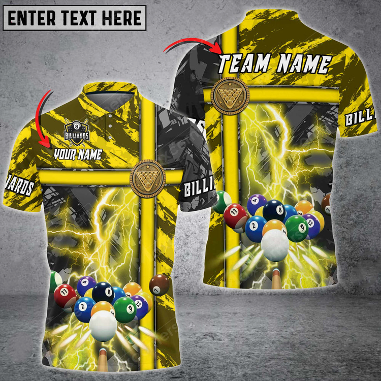 Coolspod Billiards Thunder Grunge Personalized Name, Team Name Unisex 3D Polo Shirt