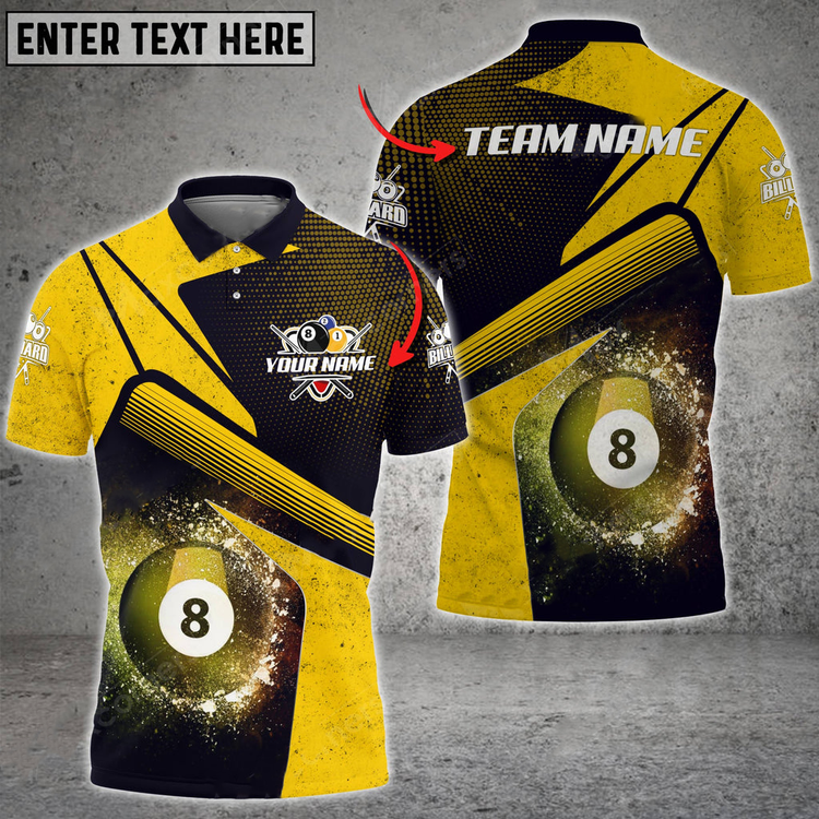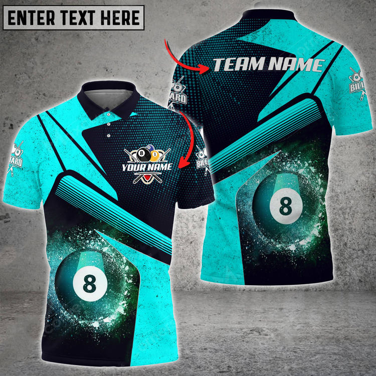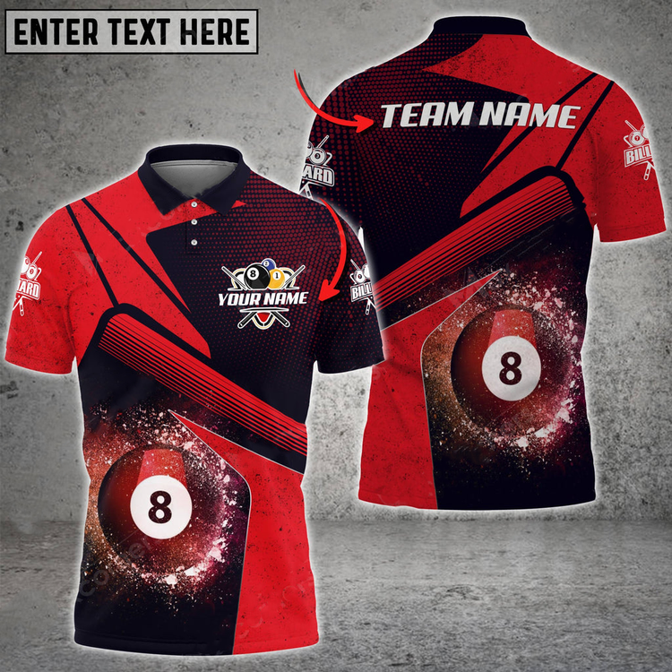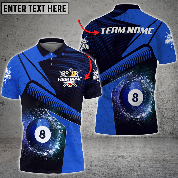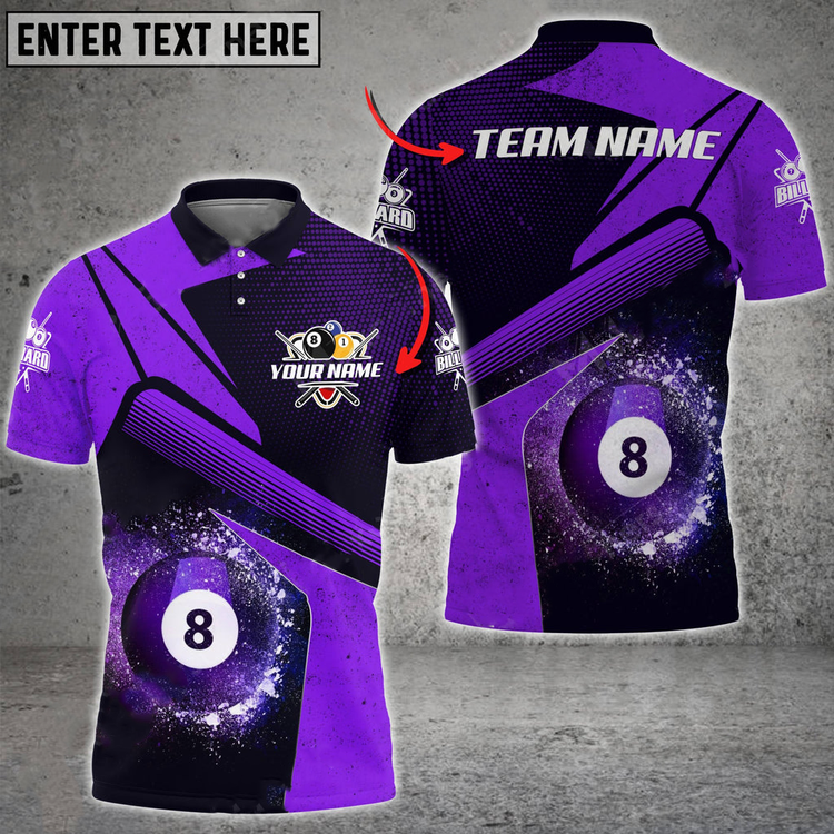 Coolspod Personalized Billiards Ball 8 Galaxy Color Style, Team Name Unisex 3D Polo Shirt